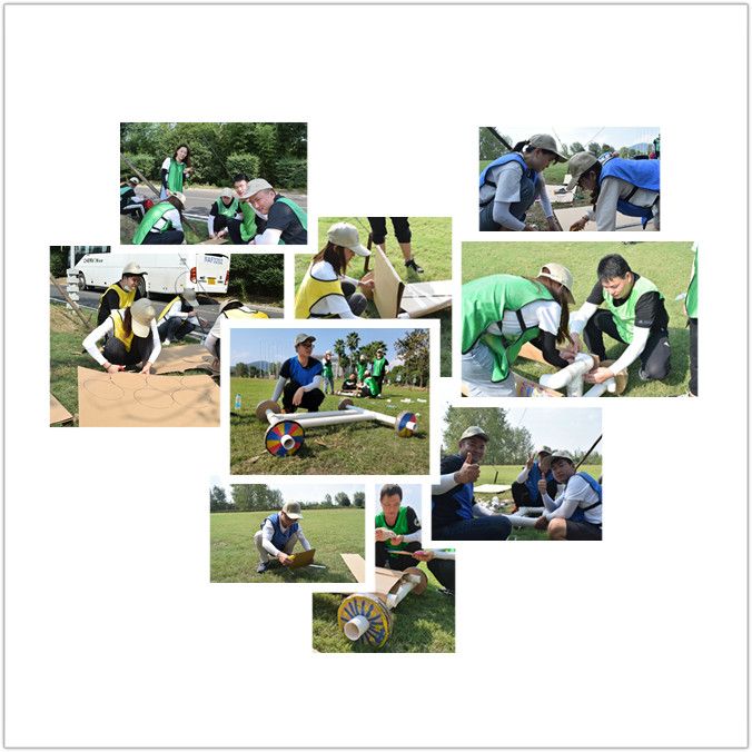 此次活動打破以往的常規(guī)培訓項目,開展主題拓展訓練F1賽車主題活動,分組進行,通過參加環(huán)游世界杯挑戰(zhàn)賽贏取道具和積分,購買賽車零件,打造屬于自己的賽車。活動首先由歡快的“好、很好、非常好、耶”、“找大王”等破冰活動拉開序幕,大家迅速的融入團隊,建立信任。緊接著在拓展教練的指導下大家被分成了三組,各組確定隊長后經過一番頭腦風暴,設計好隊名、LOGO、口號及隊形并逐一精彩亮相。
